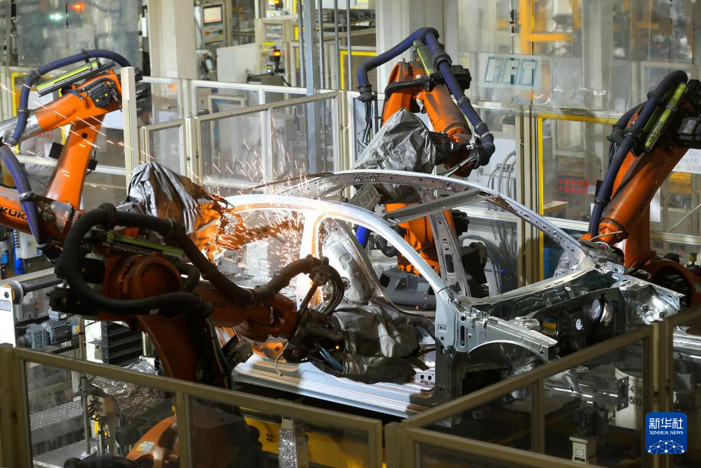 12月16日✿◈,在位于山东省青岛市即墨区的一汽大众青岛基地焊装车间✿◈,机器人在进行焊接作业✿◈。