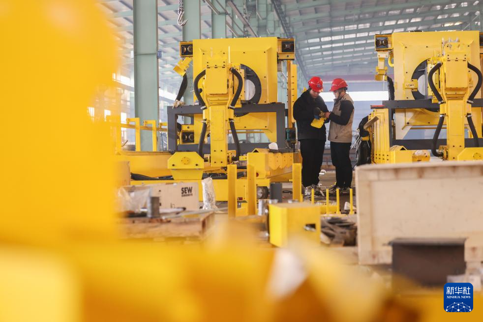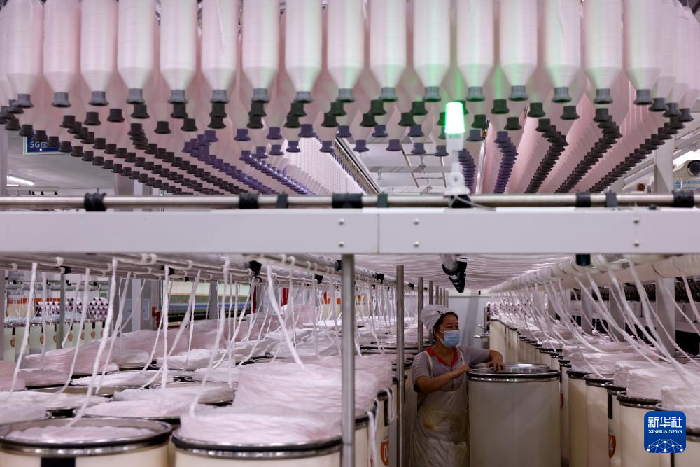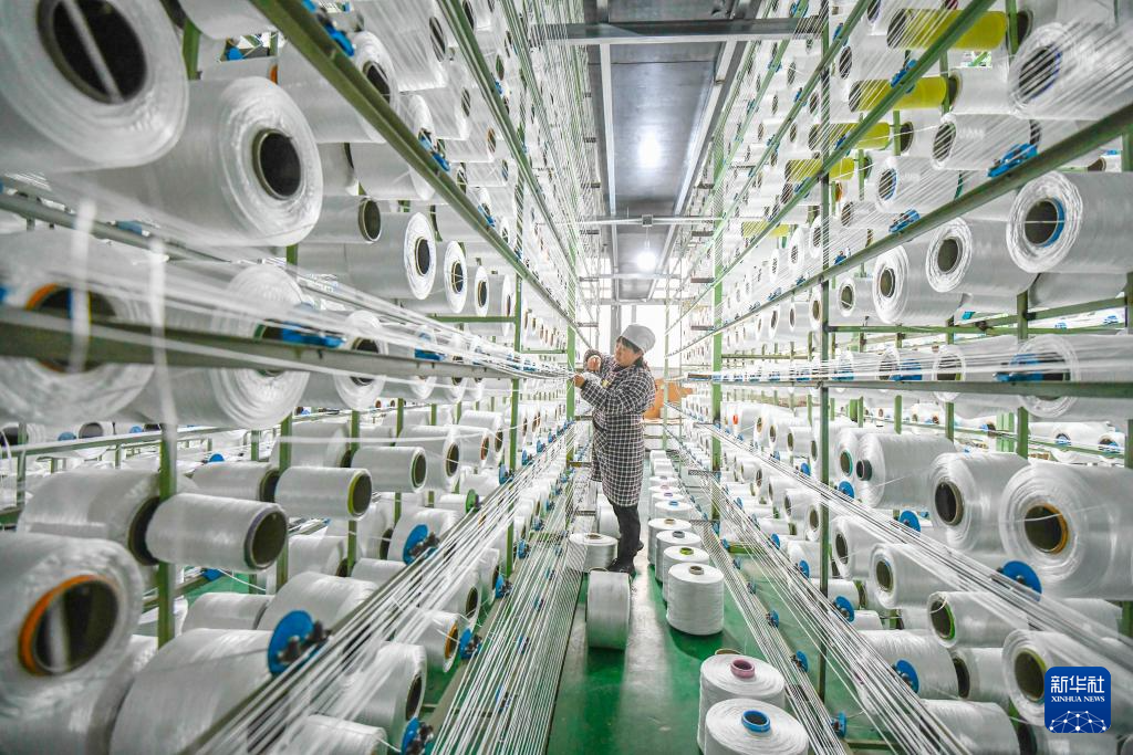 12月16日, 工人在山东枣庄经济开发区一家企业的智能化生产线上加工高端纱线午夜女豹✿◈。