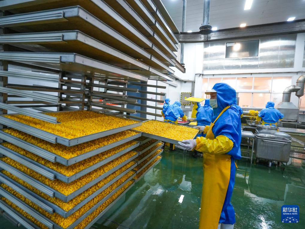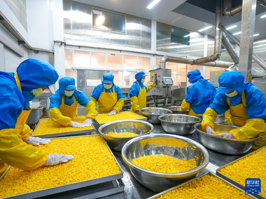 12月16日✿◈,工人在江苏省兴化市垛田街道顶能科技有限公司生产车间加工冻干玉米太阳成集团网站✿◈。