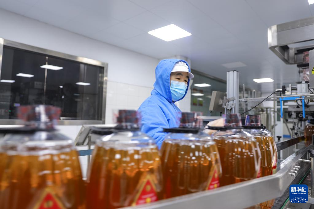 12月16日午夜女豹✿◈,在山东省青岛市李沧区兴城路街道一家食用油企业✿◈,工人在花生油生产线上忙碌✿◈。